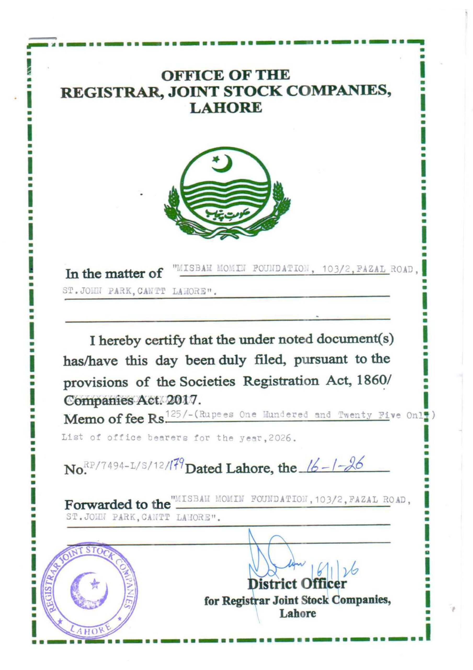 ACC/ TITLE: MISBAH MOMIN FOUNDATION